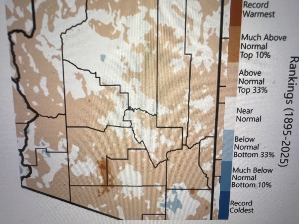 January – March three-month average temperatures were above normal across Arizona, much-above normal for areas of central and western Arizona.