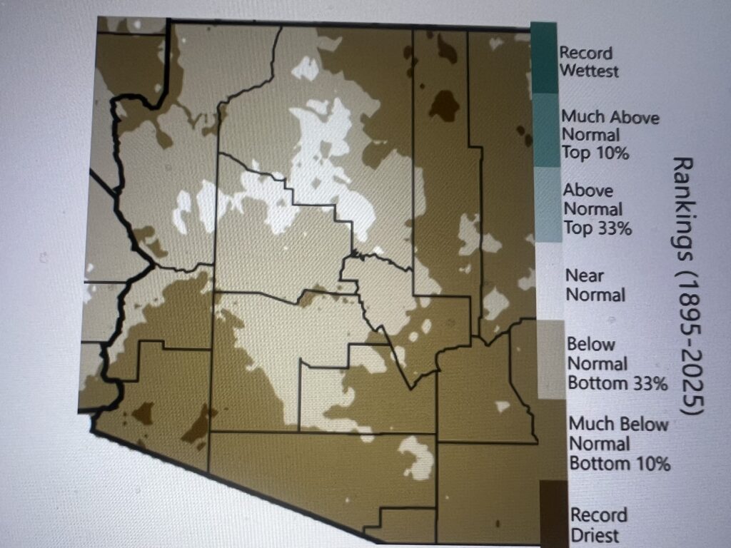 Precipitation totals for the 2025 water year so far (October 2024 – March 2025) rank below normal to much-below normal across Arizona and much of New Mexico, and for areas of southern and western Arizona it was the driest October – March on record.