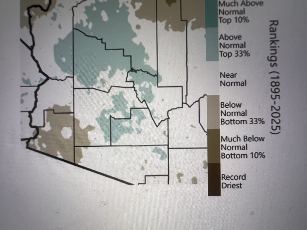 January – March 3-month precipitation totals ranked as below normal or much-below normal across Arizona. It was the driest January – March season on record for some areas scattered across the region.