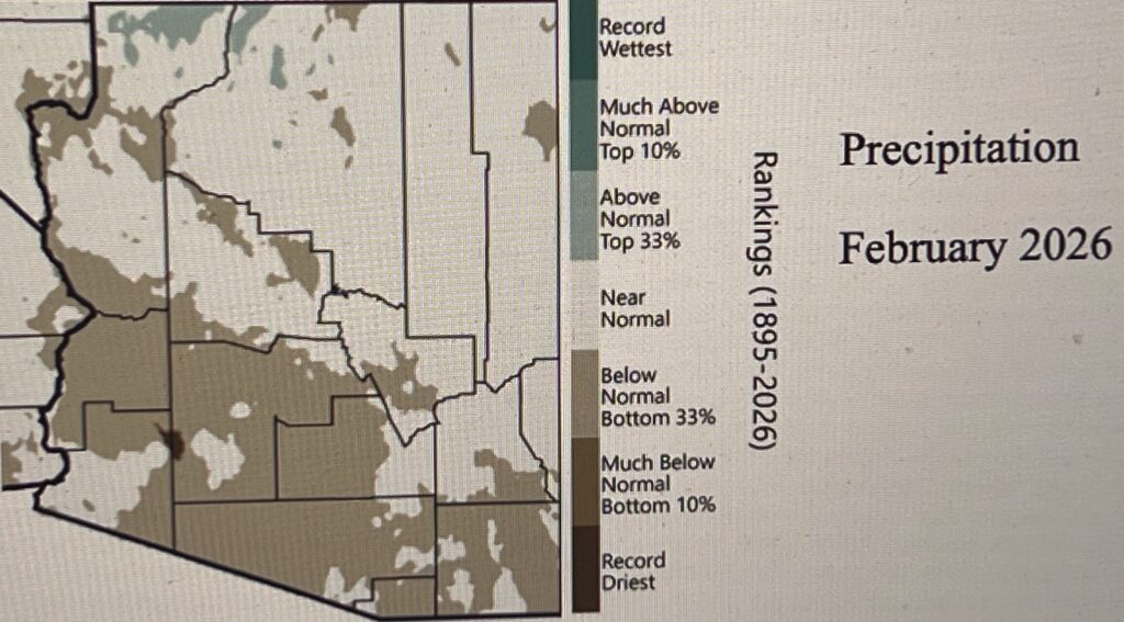 December–February 3-month precipitation totals were below normal or much-below normal across much of Arizona totals were near normal to above normal for parts of southeastern Arizona.
